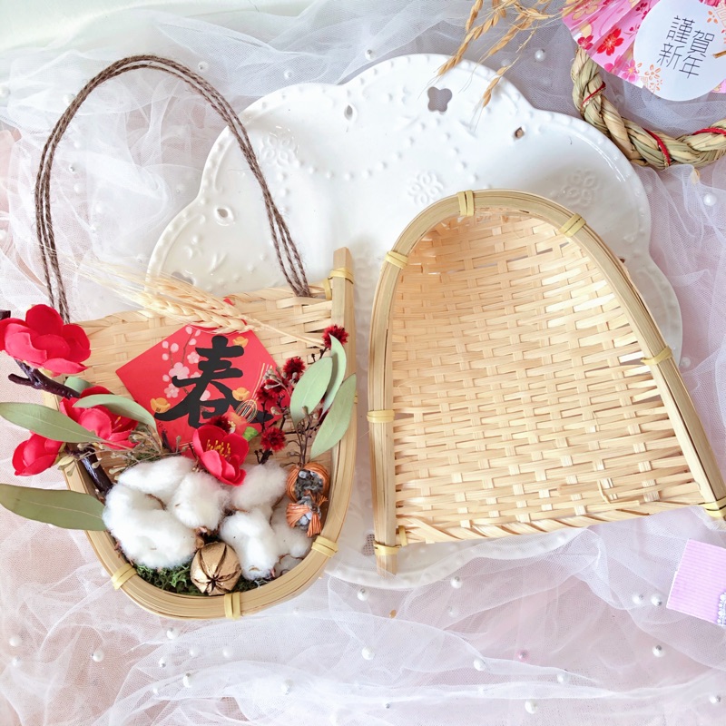 春節祈福過年擺飾吊飾春節開運招財手工竹畚箕白棉花紅燈籠福字插飾尤佳利葉賀年禮紅包極度花燥春聯